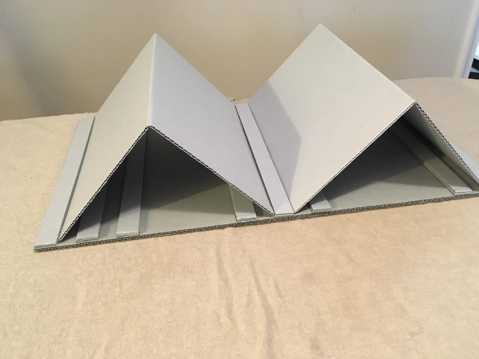 One 10-pack of 16x20 B-flute ($36.15, University Products) was enough to make a cradle with multiple sizes of wedges and spacer boards.